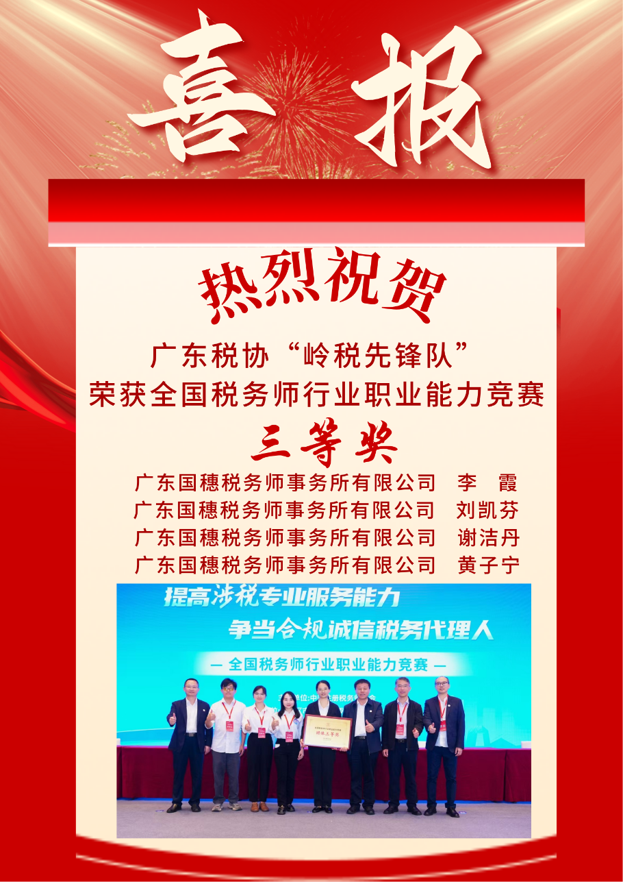 喜报!热烈庆祝广东税协“岭税先锋队”荣获全国税务师行业职业能力竞赛“三等奖”
